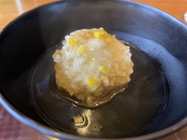 次に椀物。蓮根餅が入っているのですが、これがまた大変美味しい!