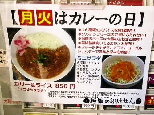 入口の扉に貼ってあるメニューを見て どれにするか迷い 食べたのは コレ