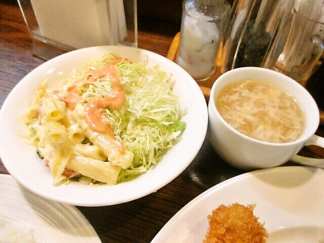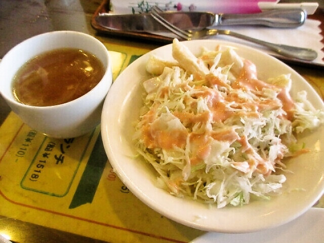 定番のサラダに この日のスープは 玉子スープでした