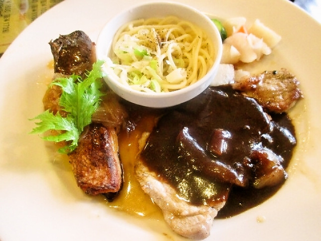 メカジキのカツとポークソテー(ロベールソース) 880円