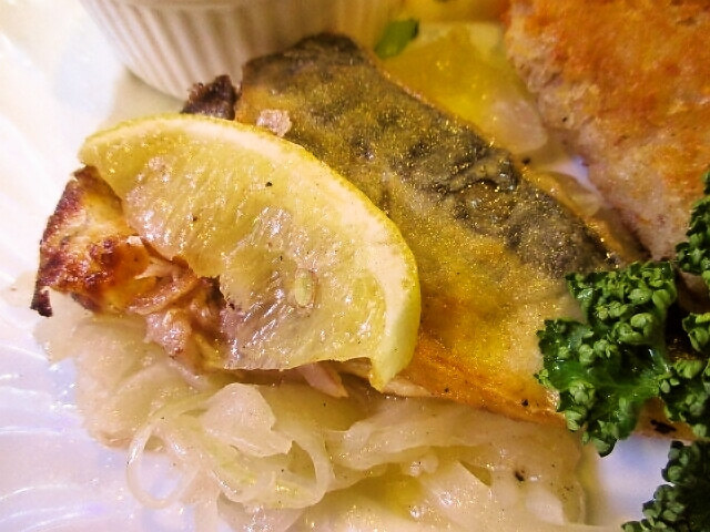 ノルウェーサバのソテーは 脂がのり身も柔らかく 玉ねぎが酸味の効き