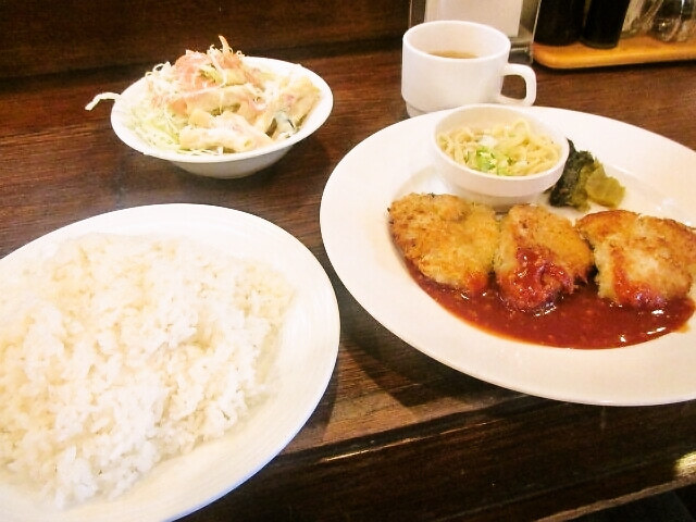 カキフライは 先月と同じく3個 先月はタルタルでしたが 今月は オーロラソース?
