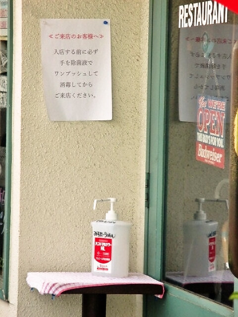 店頭に立つと 先月はなかった アルコール消毒が鎮座