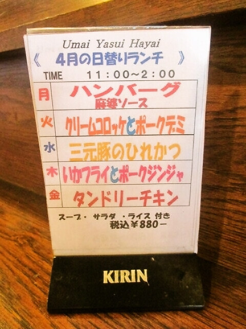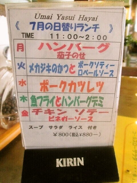 今月も残り少ないですが 日替わりメニューを載せておきます