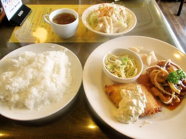 ノルウェーサバのソテーとビクトリアカツ 880円