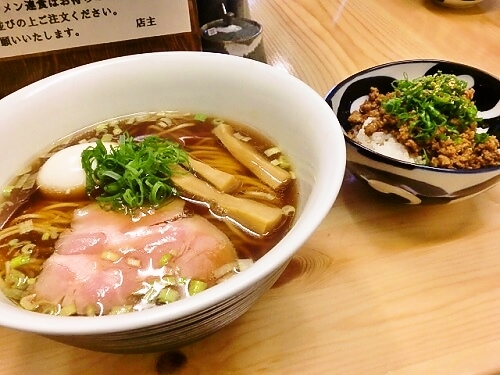 醤そば 750円 味玉 100円 炸裂飯 小 200円