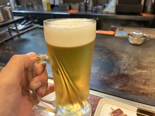 土曜日の18時半の到着、店内には2組ほどの先客、先ずは楽勝に3人鉄板席へと着席いたします。