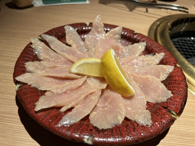 そしてにんにく生タン以外にはやはり厚切り生タンです❤️最高に美味しいです。プリプリたまらない食感です。レモンを振りかけて