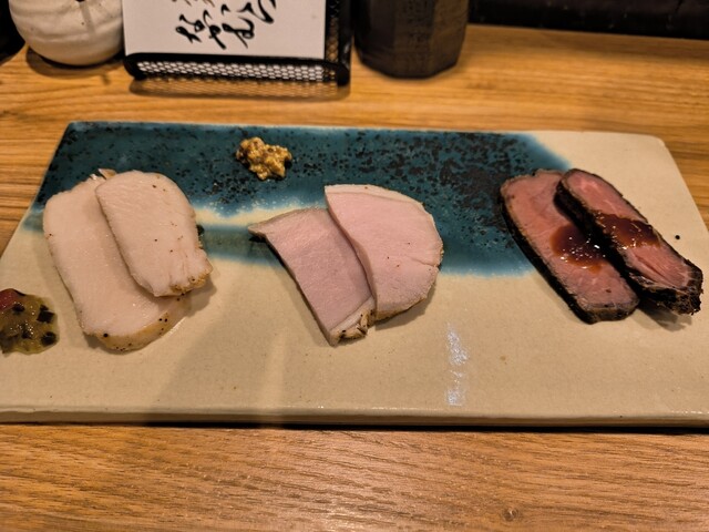 前菜、鶏スープ、茶碗蒸し、串5本からなるおまかせコースに、串、単品を追加。