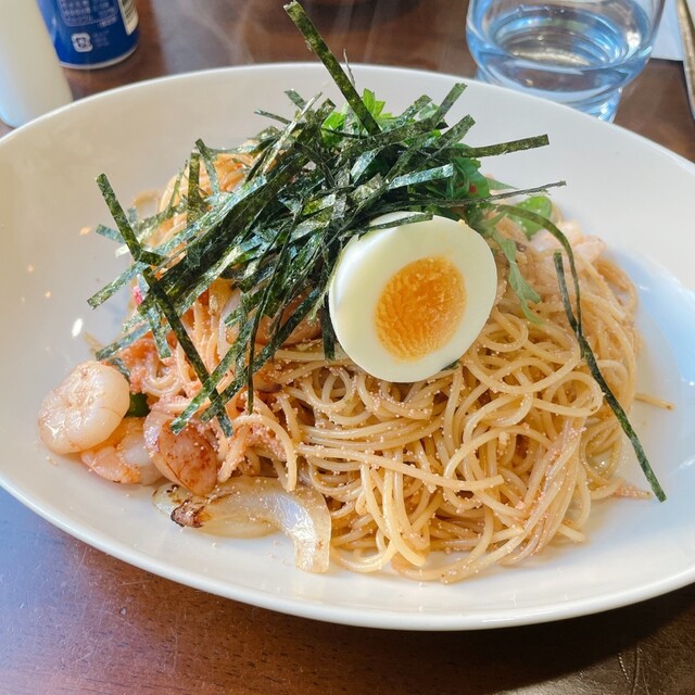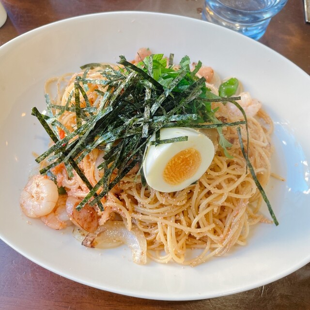 毎回ここに来ると海老・たらこのスパゲッティーを頼む。