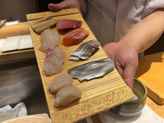 こちらのお店のではオーナーの出身地に因んで、愛媛産のヒノヒカリ米、酢は愛媛新浜の赤酢で優しい味でとても薄い色の独特な赤酢を使って居られ、全体に繊細で優しさに溢れる寿司をいただけます。