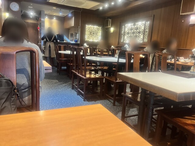 席は3階まであり、一階は両方の壁側に2人用テーブルが四つずつ、ホール中央に円卓二つと4人用角テーブル1つの構成。2階と3階は入り口に外にあるエレベーターで上がります。