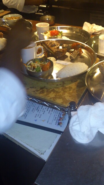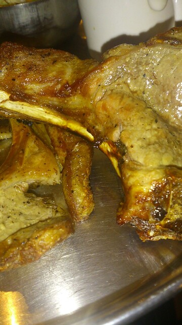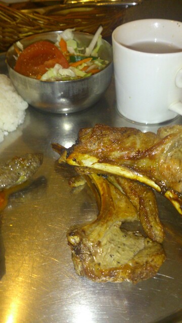 料理は、なんと 、630円 子羊のリブ2本とシシカバブ2本のセット