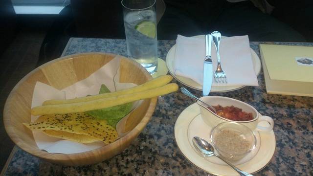 トマトのダイスと、アボカドのディップでいただきます
