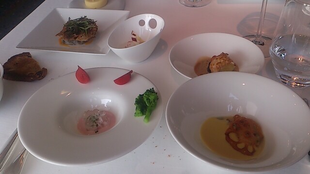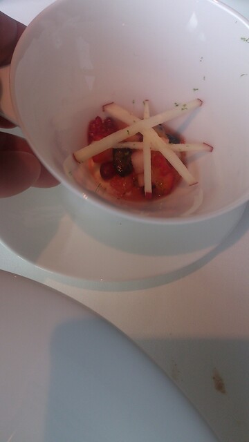 リンゴとフランボワーズ、カシスのサラダ ライムピール添え