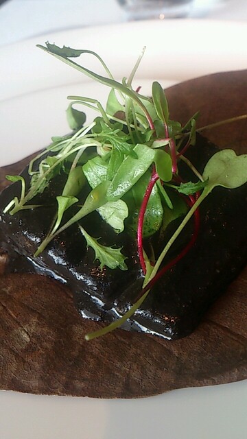 黒くおおわれた、その表面は、オリーブやポークの味わいに