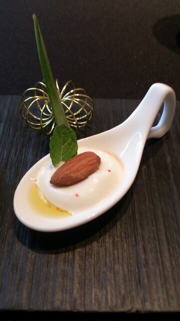 スプーンには、フロマージュブランのムースにアーモンド、ミント