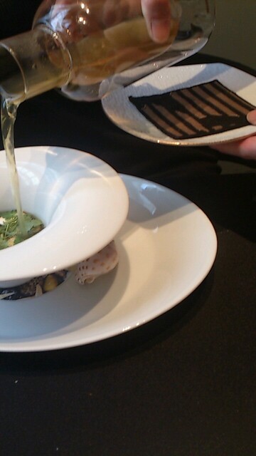 濃厚な潮の香りと雲丹のあまみ、それを、カリフラワーのクレームがまとめあげます