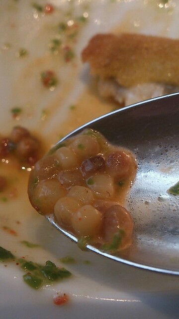 ガルビュールという、ベーコン風味の豆のソースといただくと、こくのシンフォニー