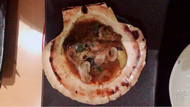 カウンター席で旨い旨いと嬉しさいっぱいの表情で食べてたせいか、店主からアワビの肝焼きをサービスしてもらいました。台はホタテだけどアワビの肝ですよ…って、さりげなく出されたので、妙に得した気分…