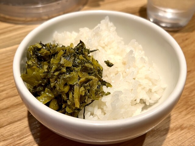 注文はいつもと同じ"排骨担々麺"(1,150円)をゴマ多めで、美味しいですね。スパイシーで薄くて大きな排骨、塩分強め辛さ普通の担々スープ、加水率低めでスープとよく合うストレート麺、歯応えのある青梗菜、そしてサービスの小ライスと食べ放題の高菜、どれも最高です!