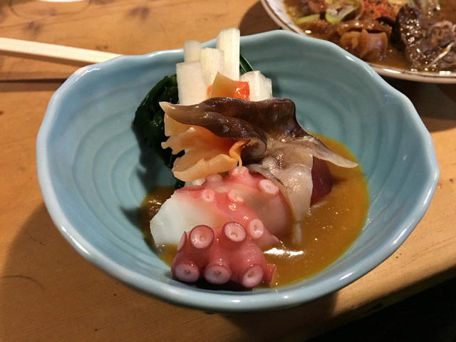 この日の刺身はハモ、ツブ貝、マグロ赤身!