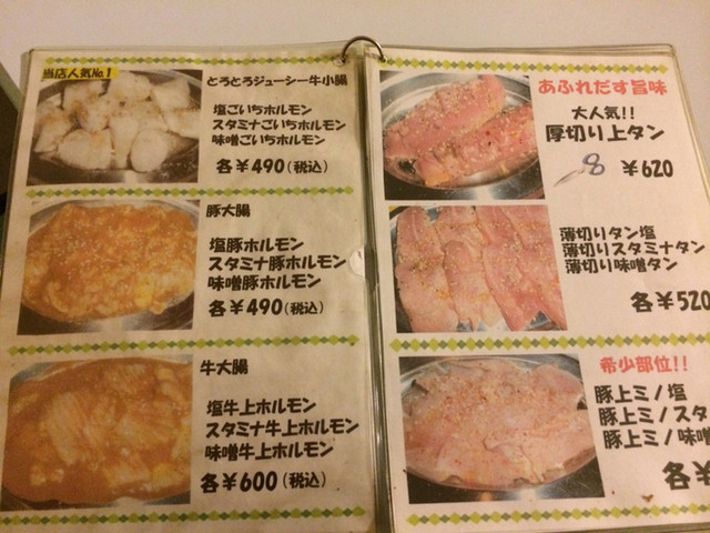 ホルモンは種類が豊富で塩、スタミナ、味噌の三種類の味付けが選べるのが嬉しいです。