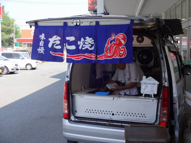 国道169号線沿いにある吉野ストア(通称ヨシスト)高取店の駐車場内に、週に3日だけ現れる、幻の?たこ焼き屋さんです。
