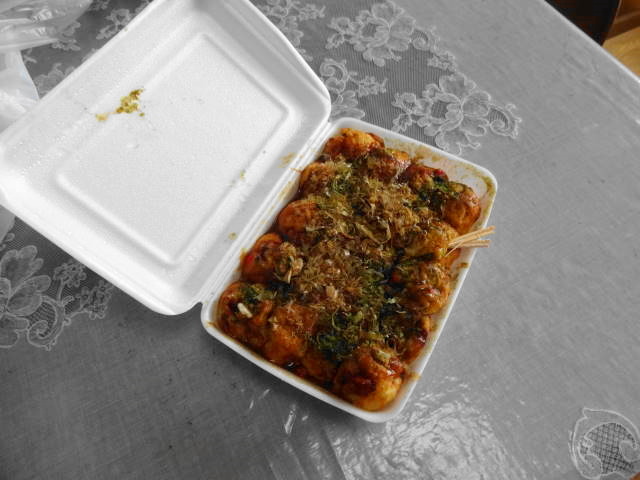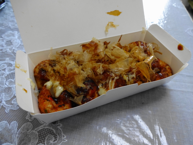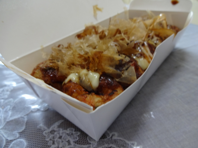 この日はソース味を頂きました。トッピングは鰹節と青海苔とマヨネーズ。
