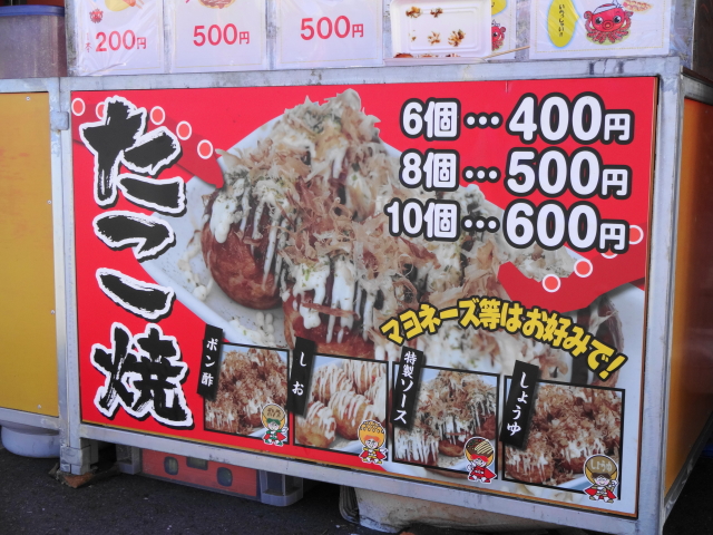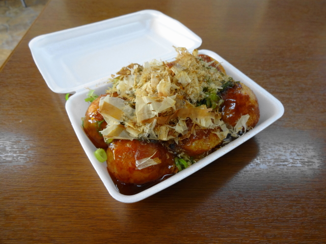 ソース味としょうゆ味が選べて、大玉サイズのたこ焼きが6個で300円です。