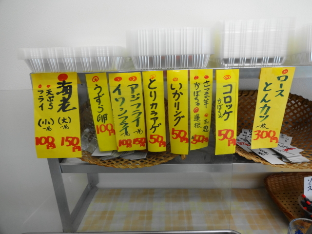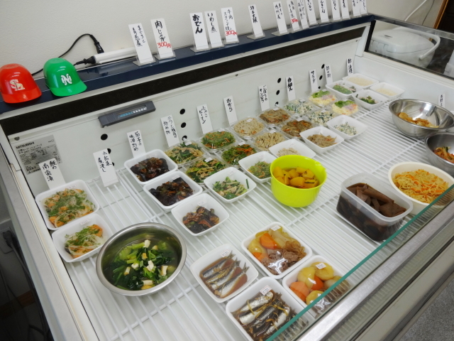 店内には1パック100円からの惣菜が種類多く並んでました。