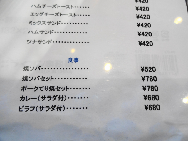 昔ながらの喫茶店ですので、食事メニューも少ないのですが、自家製カレーライスやピラフなど少数精鋭のこだわりメニューといった感じでしょうか。