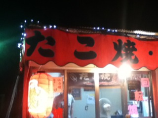 R169沿い、ローソン大淀新野店の駐車場すぐ横にある赤いテントのたこ焼き屋さん。