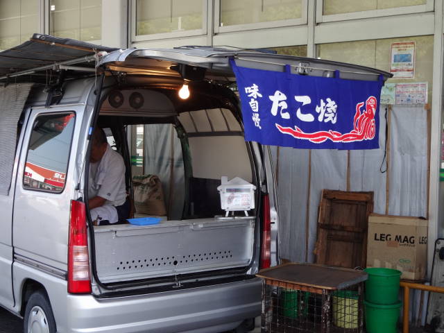 国道169号線沿いにある吉野ストア(通称ヨシスト)高取店の駐車場内に、週に3日だけ現れる、幻の?たこ焼き屋さんです。