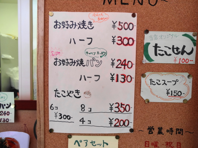 お店のメインは「お好み焼き」だそうで、お好み焼きをパンで挟んだ「お好み焼きパン」がとくにお薦めだそうです。