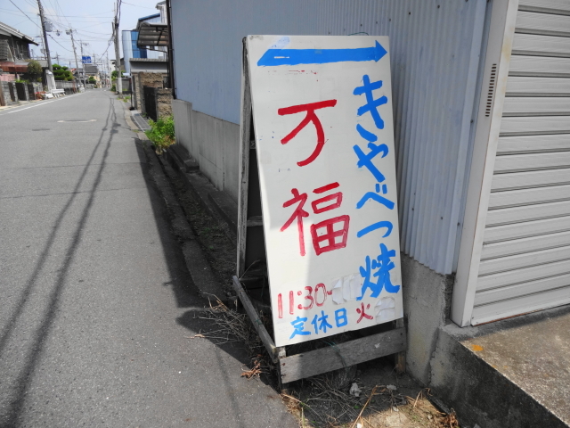 中和幹線を渡った住宅街の中で、ガレージを利用して営業されてる「キャベツ焼きの万福」です。