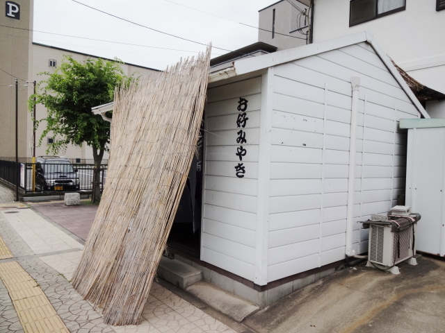 入り口に暖簾はあるにはあるんですが、夏場は西日よけのヨシズで隠れてしまって、近づかないとそこがお店だとは気付きません。