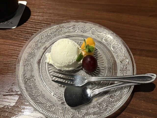 ステーキはうずらの卵を玉ねぎソースに混ぜてつけるのとワイン塩とわさびにつけて食べられて、美味しかったです。味噌汁がカニの出汁にアオサが入って最後まで楽しめました。デザートはプレートのサービスに花火もつけてお祝いしていただき、大喜びでした。デザートのアイスも美味しかったです。またぜひ行きたいです。