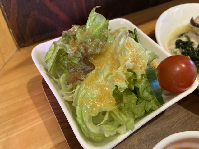 本日はほうれん草の胡麻和え、サラダにはハムが添えられておりました(*^^*)