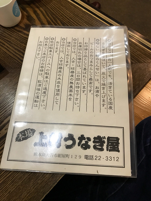 人吉駅から徒歩で来れます。店内は個室に間仕切りされていて、若干迷路のよう。外から見ると縦長で、まさにうなぎの寝床。落ち着いた雰囲気で、こんなところでうなぎを食べながら焼酎でも飲めば最高なんだろうなーと思いつつ、お昼ご飯を食べることにしました。
