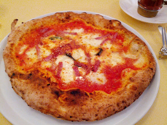 モチモチの生地をしっかり焼いた美味しいピザ