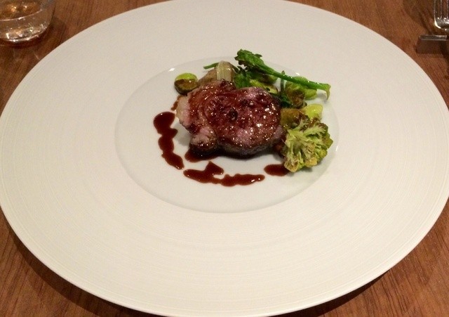 ディナーは、5000円と8000円程度のコースがあったので、事前に5000円のものを注文しておきました。コースの内容は、前菜、スープ、魚料理(すずき)、肉料理(子羊)、デザートでした。シャンパンと赤ワインを少々頂きました。