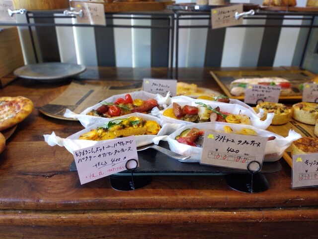 暫くぶりの訪問でしたけど、スタッフの方たちには覚えていただいてて嬉しかったし、すんなり買い物できて良かったです。車いすでの入店はスロープを設置していただかないと難しいのですが、お店の方がすぐに対応してくれるので、障害があっても気になりません。久々で多めに買ってしまいましたが、今回はバゲット260円、B-Bread291円、ビーフカレーパン280円、さつま芋とベーコンと舞茸のキッシュ389円、ピスタチオスティック312円、クイニーアマン280円、イチゴとピスタチオのフィヤンティーヌショコラ1200円…明朗会計、プライスカードは内税です(^^)まだ全ては食べていませんが…