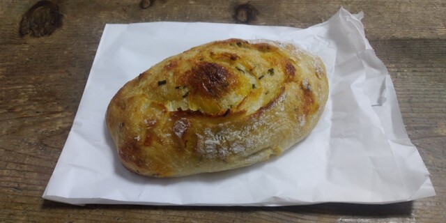 目葱…パン…ほんのりチーズ、ロデブみたいな多加水気味のもっちりしたパン生地、決めておかないと、あったら、あっただけ食べてしまいそうな、食べやすさですが、肝心の、目葱…の感じが、納得できるインパクトを感じれなくて、残念…。も一回買って、確かめるだす!