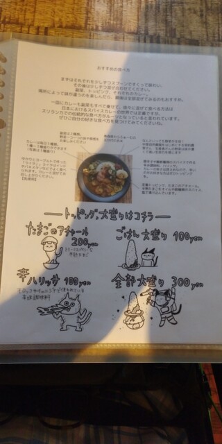 それに、このカレーはナンではなくて、ご飯が付きます。日本のお米みたいですけど、硬め一歩手前の硬さで、カレーで食べるには、ちょうどよい硬さかな?と思いました。さすが…よく考えられてそうな気がしました。それに、キュウリや紫キャベツ?みたいなお新香みたいのも添えられてます。が、日本のお新香のような塩気は特になく、ご飯と、カレーと、それに合わせて一緒に食べると、ちょうどよい感じの、口で言い表しづらい、微妙なバランスです(^^)。