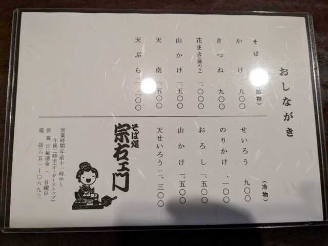 ◆花まき(焼きのり)のそば 1;000円