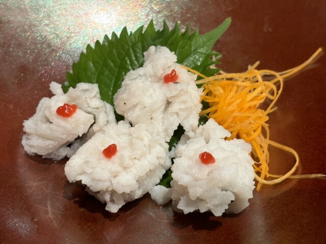 突き出しの後、お刺身、焼きガニ、茹で蟹、お鍋、雑炊と続きます。