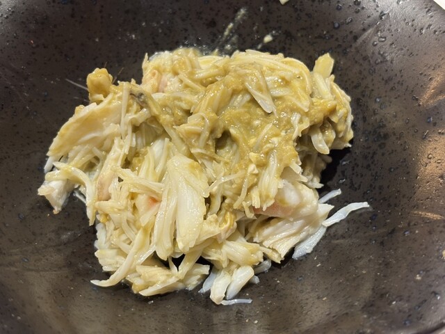 茹で蟹は、女将さんがムシって蟹味噌と和えて出してくれました。