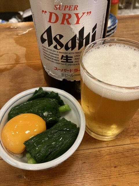 コップ酒(温)210円、にら(おひたし)180円‼️良いのかこの値段?✨