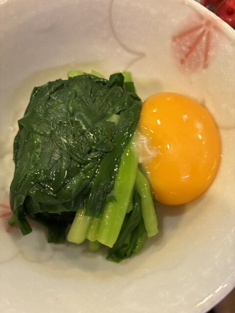 ニラ玉 卵黄と 茹で韮と卵黄